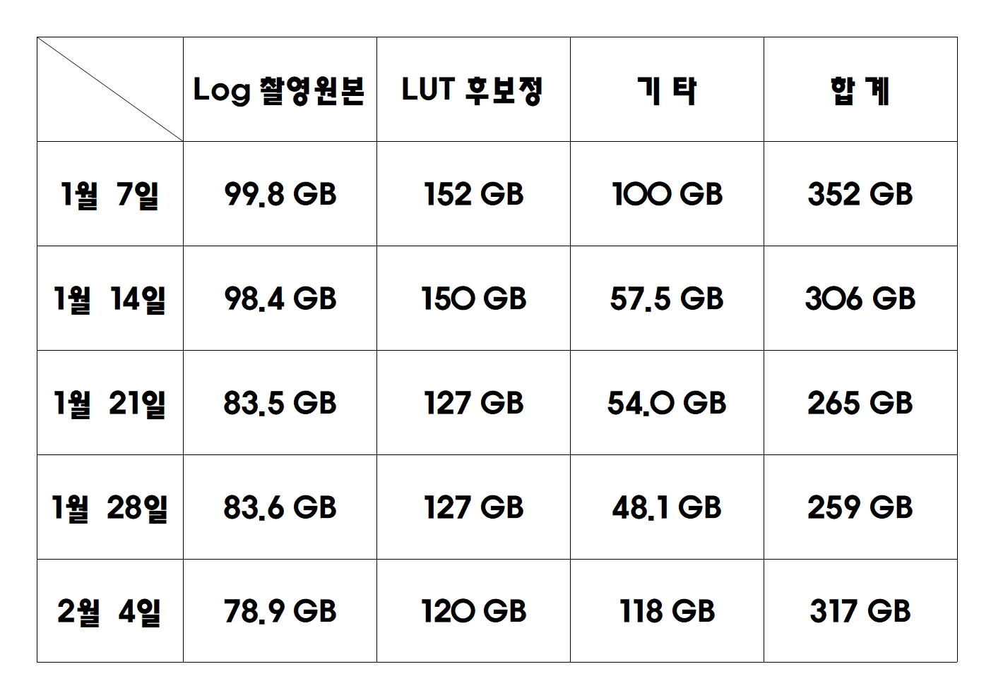 LUT 168Mbs = 1초당 용량 21MB = 1분 1.23GB