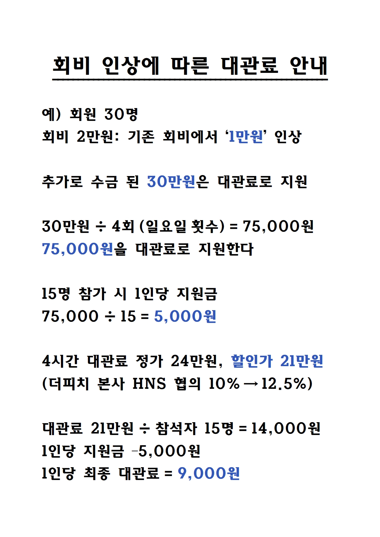 회비 인상 안내